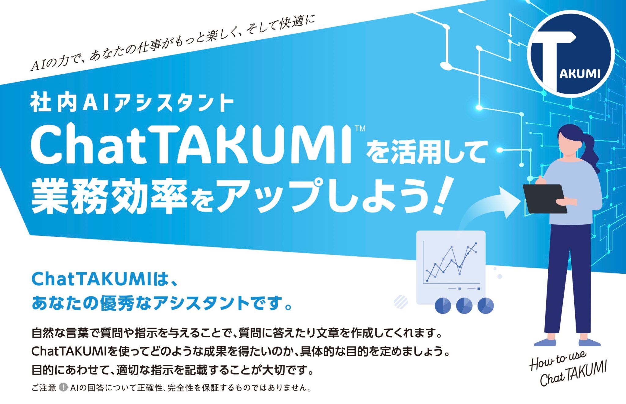 お客様が安心して業務で使える生成AIのChatTAKUMI(チャットタクミ)による