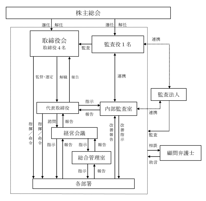 当社は経営の透明性を確保するため、以下の企業統治体制を採用しております。
